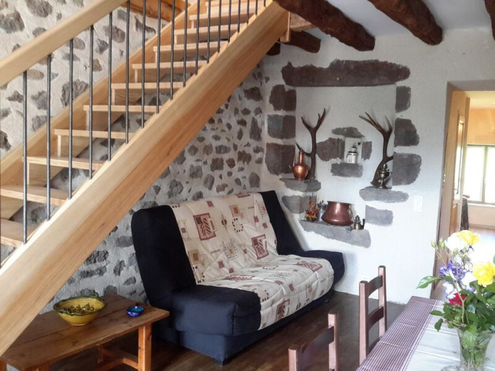 This gîte has been completely refurbished and is located in a lovely, quiet village between Aurillac and Le Lioran resort.Rental comprises a large living room with fireplace (wood provided), 2-person sofa bed, fully equipped kitchen with dining area and bar, 1 toilet, upstairs shower room, separate toilet, 1 bedroom with 1L, 1 bedroom with 2 beds.