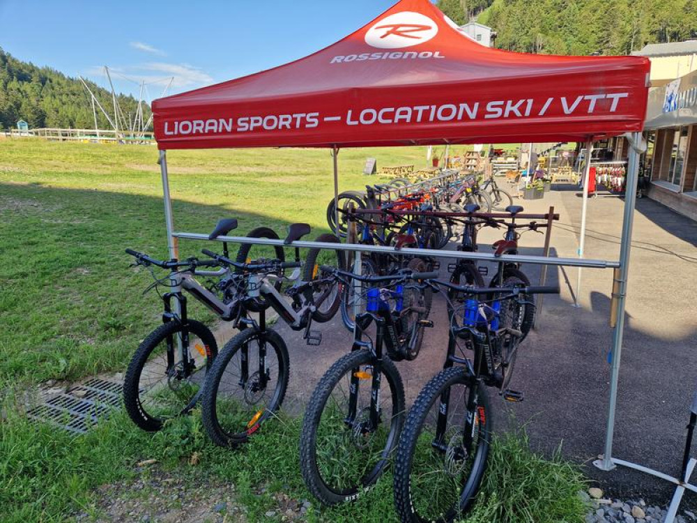Rental of ski, snowboards, mini-skis, snow scooters, snowshoes, sledges. Sale of garments, ski equipment and accessories