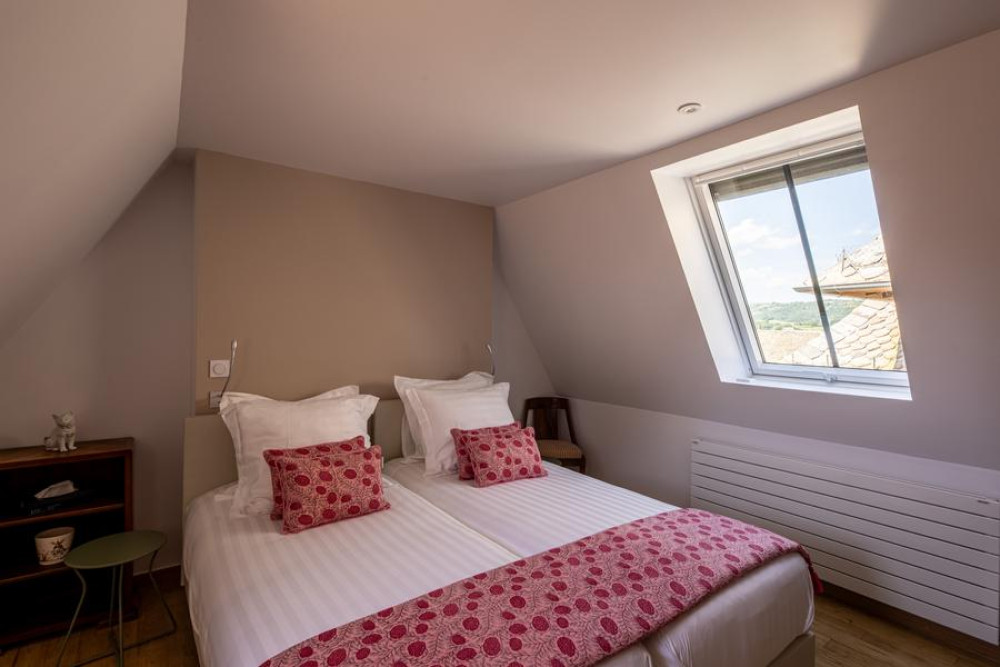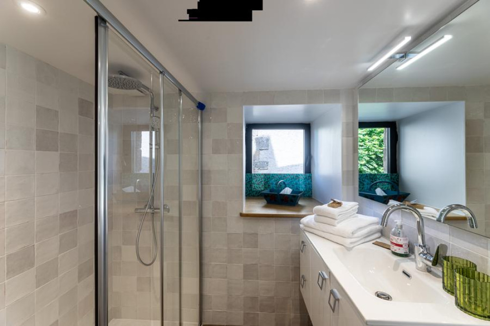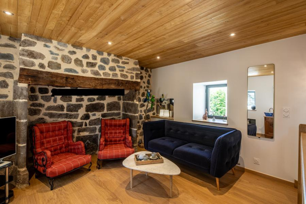 In a newly renovated 40 m² tower, this 2-person apartment comprises a kitchen/dining room, a living room with a breathtaking view of the Cantal mountains and the village of Raulhac, a bedroom and a bathroom with separate toilet.
