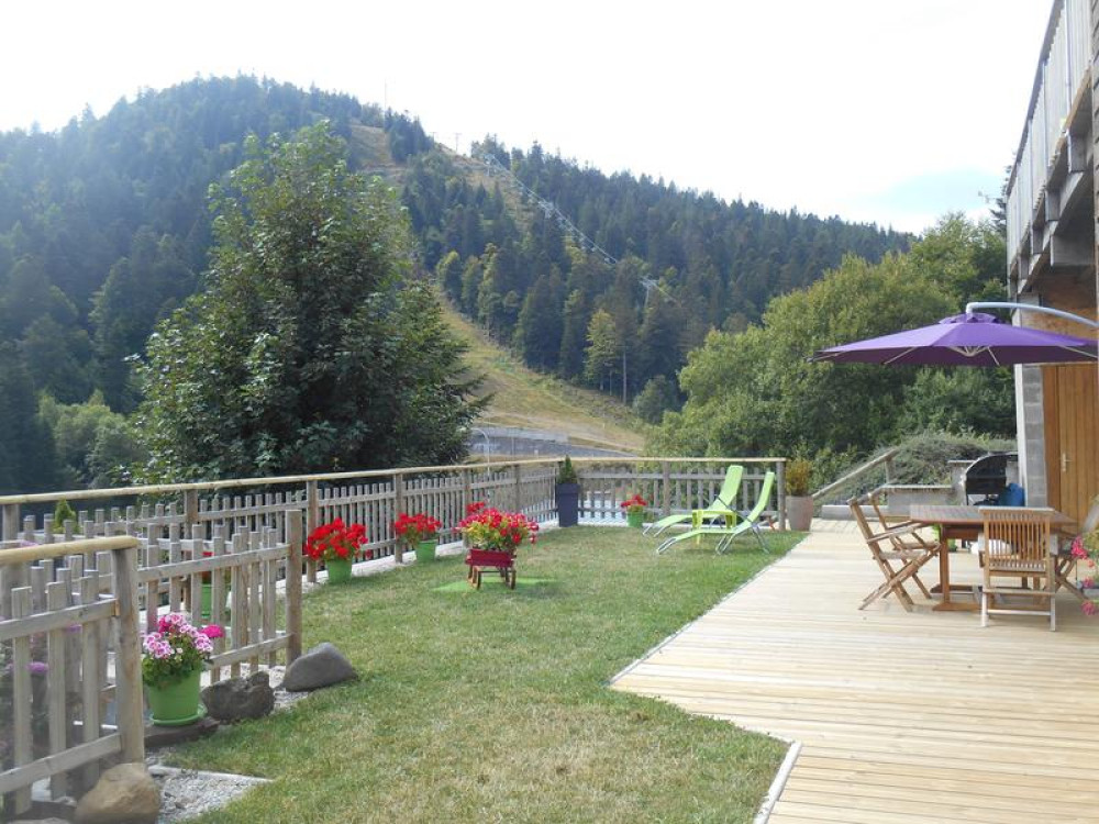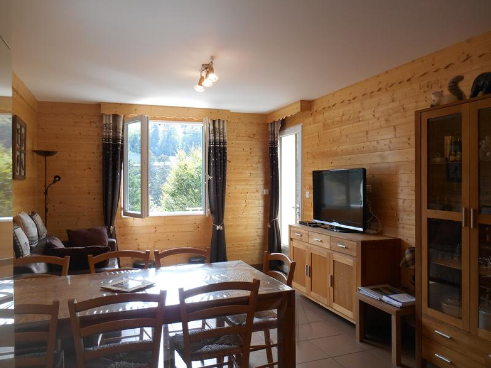 Beautiful mountain-style apartment on the garden level of a chalet facing the Plomb du Cantal. South-facing, in the Alagnon sector, 350m from the slopes and the Masseboeuf chairlift.