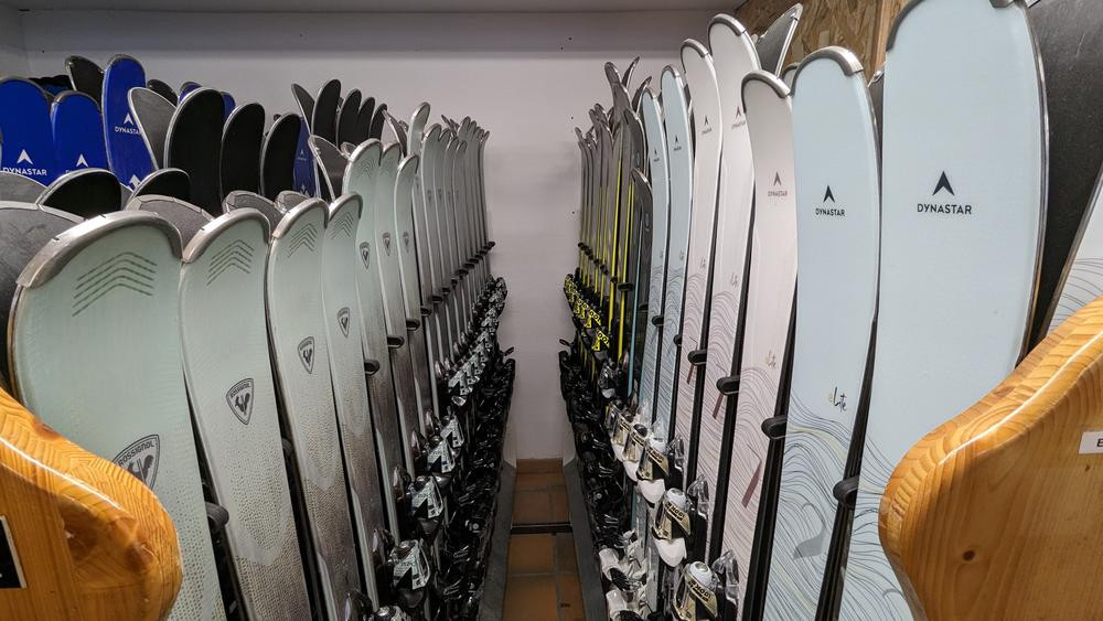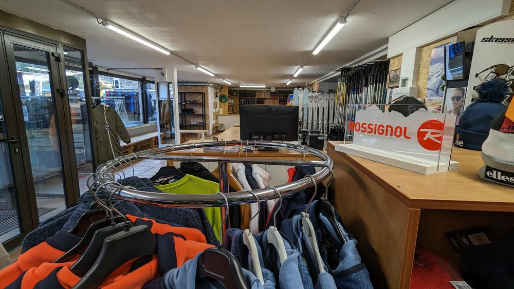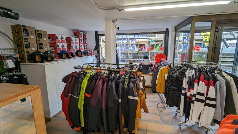 Store for the rental and sale of all-season sports equipment (skis, snowboards, mini skis, sleds, toboggans, poles, clothing, shoes, accessories, etc.).