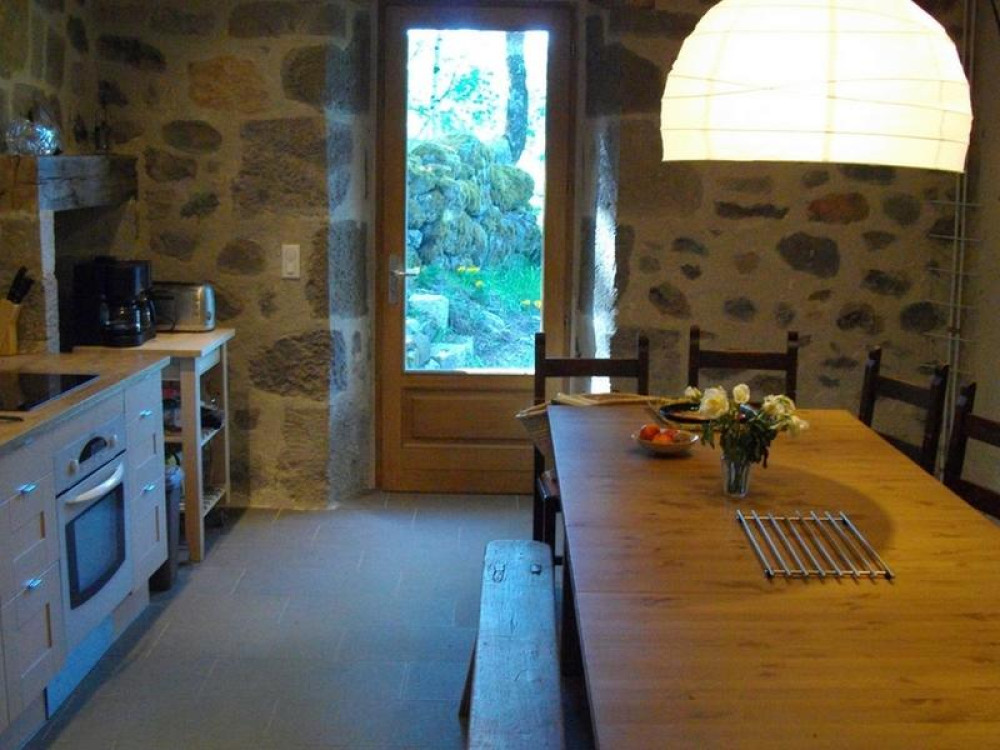 Au coeur du Parc des Volcans, belle maison de caractère dominant une vallée, restaurée avec beaucoup de charme dans le respect de la pierre et des bois anciens, comprenant 2 gîtes mitoyens de 6 et 4 pers.Cheminée, cuisine équipée, salon, 3 chambres, salle d'eau et 2 WC. Au RDC : grand séjour avec cuisine intégrée, grande salle à manger, salon avec cheminée. Buanderie avec WC. A l'étage 2 chambres avec lit 140, salle d'eau, WC. Sous les combles chambre avec 2 lits 90.