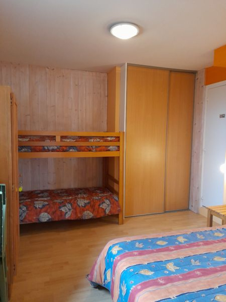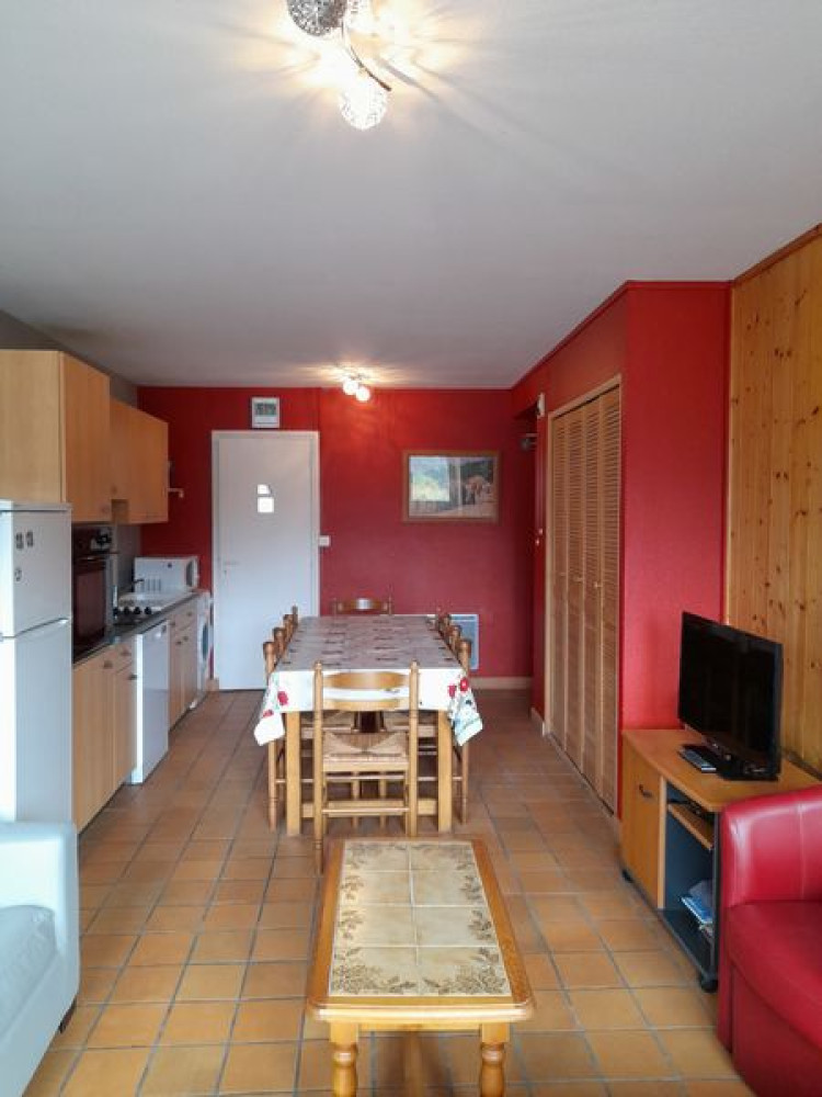 Appartement de 47m² en rez de chaussée, avec terrasse, coin cuisine dans la pièce principale. Couchages : 1 chambre indépendante avec 1 lit 140 et 2 lits 90 sup. Salon : 1 BZ 140 et canapé lit.